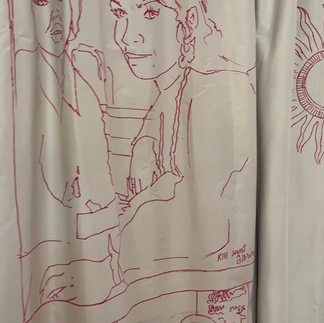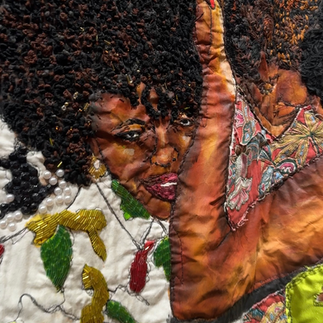 So anyways, the moment I walked into the building, slightly after 6 p.m. an intimate crowd of about 50-60 people, in a room off to the right, were locked into one of Howard King's good friends sharing memories of his legacy as the unknown, known mayor of Corktownā¦and all of a sudden, the lights seemed to beam brighter. The voices started going mute as colors of silk and assorted fabrics vibrantly came into focus, pulling me into the room and allowing me to see the detailed stitching that pulled together faces, jewels and so much emotion..it was utterly breathtaking.Ā