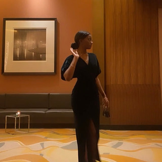 I knew that the v in the front was super long down my chest, so I was already prepared to pin it. But for some odd reason on the night of, everyone was looking directly at my chest as if I were walking around with my nipples out…soooo me growing aware of that, I immediately went back to the bathroom to pin it just a couple of inches higher. If this were any other event I wouldn’t have cared and would’ve just given people the same weird they were giving me back to them, but considering this was my first work event, I wanted to keep things professional and modest. So after repining my V, I continued throughout the night and no longer received looks of concern and judgment but instead received looks of admiration and curiosity. Either way I remained unbothered and sipped my champagne🍾
